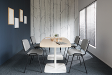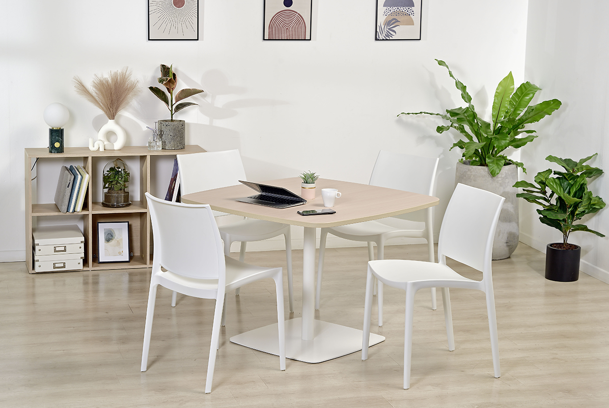 Functionally and ergonomically designed, the Arti range is ideal for meeting environments and break areas. The robust tables, with melamine tabletops treated against scratches and glare, and impact-resistant edges, guarantee maximum durability. The solidity and modernity of the series are also reflected in the 6 mm thick steel legs.