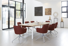 Designed for your meeting rooms, the Belem range stands out for its modularity and elegance. Thanks to its various sizes and extensions, it can be easily adapted to the number of guests. The oval top and extensions can accommodate 18 people, or even more if you wish! With its high-strength, anti-reflective top, impact-resistant edges and tubular steel legs, this series guarantees sturdiness, stability and longevity of your furniture.