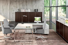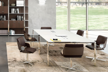 Combining sturdiness with lightness, the Darwin range has a brilliantly stylish and practical design. The chromed legs and side edges as well as the tops available in white, walnut or elm give it a classic, elegant look. The cable management system and integrated base ensure a tidy workspace. And when it comes to storage, the matching mobile sideboard keeps everything neat and harmonious.