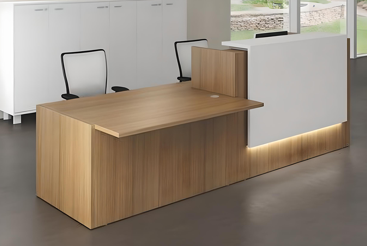 LED lighting for working area and front sides of the reception desk Jana