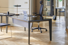 With a distinctly contemporary look, bringing together noble materials and structured design, Onyx furniture adds instant character to your workspace. The top in glass or textured wood contrasts beautifully with the slim metal legs, creating a chic and stylish look. Designed for boardrooms, it combines design, comfort and functionality. The range is not only practical and thoughtful, but also extensive: straight desks, storage units, occasional furniture... It's up to you to put together your favourite executive desk.