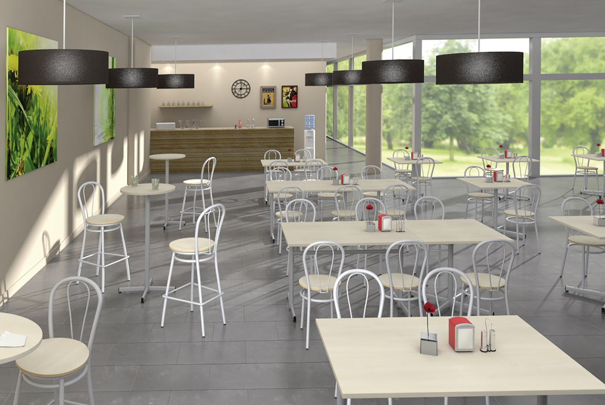 With three table sizes - round, square and rectangular - this collection offers a range of configurations for every need. The square and rectangular tables can be combined to increase seating capacity, while the round tables and side tables are perfect for small dining areas or coffee breaks.