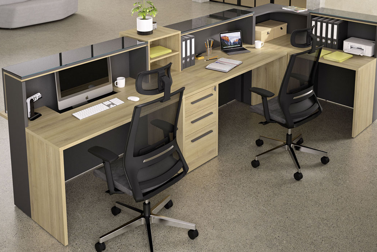 Well reception desks are modularly designed and can be easily adapted to any configuration. They combine modern style and comfort and offer practical options such as removable niches and shelves, integrated LED lighting, a shelf for bags and specific cut-outs for integrating screens. Top-class furniture for a functional and stylish reception area.