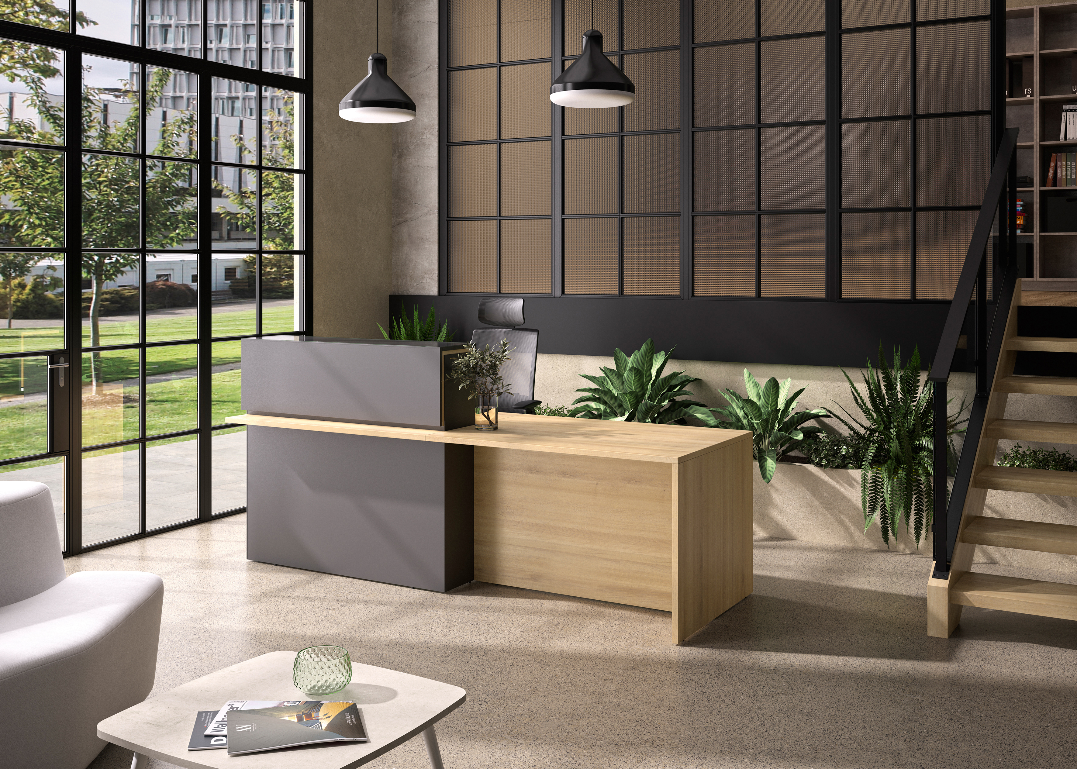 End reception desk dimensions: L 120 x H 74 x D 85 cm