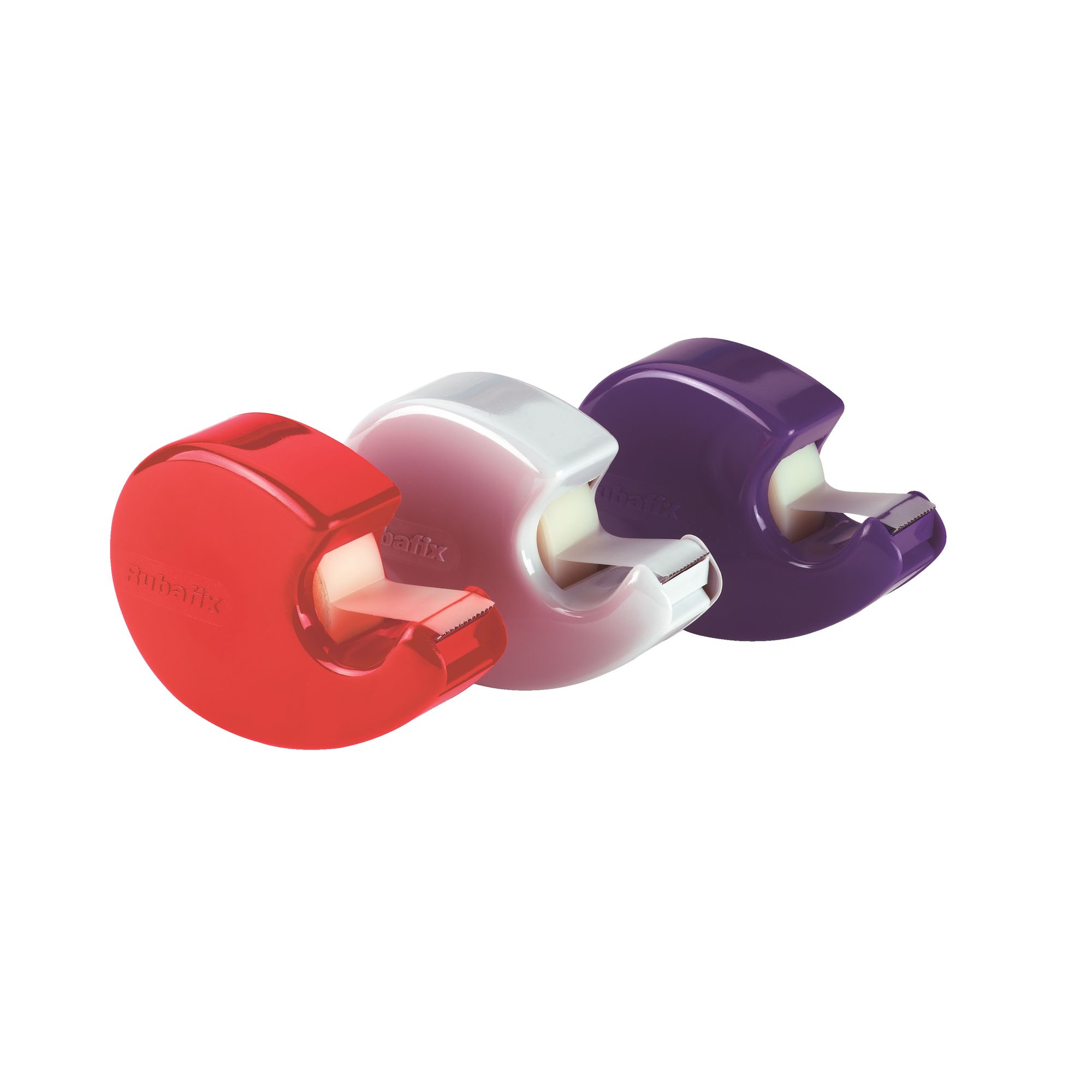 Plastic tape dispenser for tape width 33 x m 19 mm. with metal saw-edge. No tapes supplied. 4 various colors: red, gray, yellow, purple measurements: H 7 x W 10 x D 3 cm for small tapes tape dispensers, adhesives, adhesive. adhesive roller. drawing and accessories.