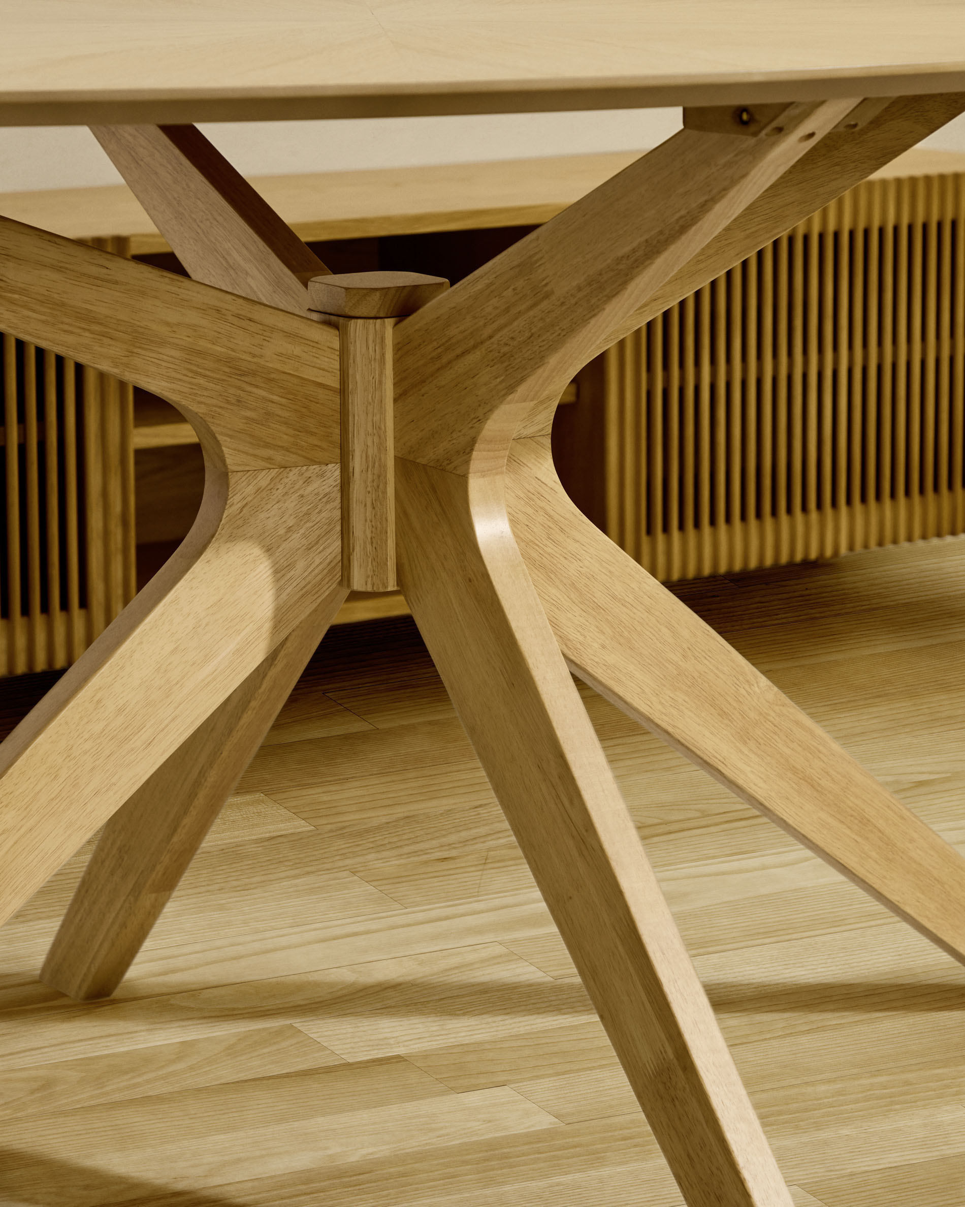 Oval top made of MDF with oak veneer finish, each table is unique thanks to its natural veins and colors.