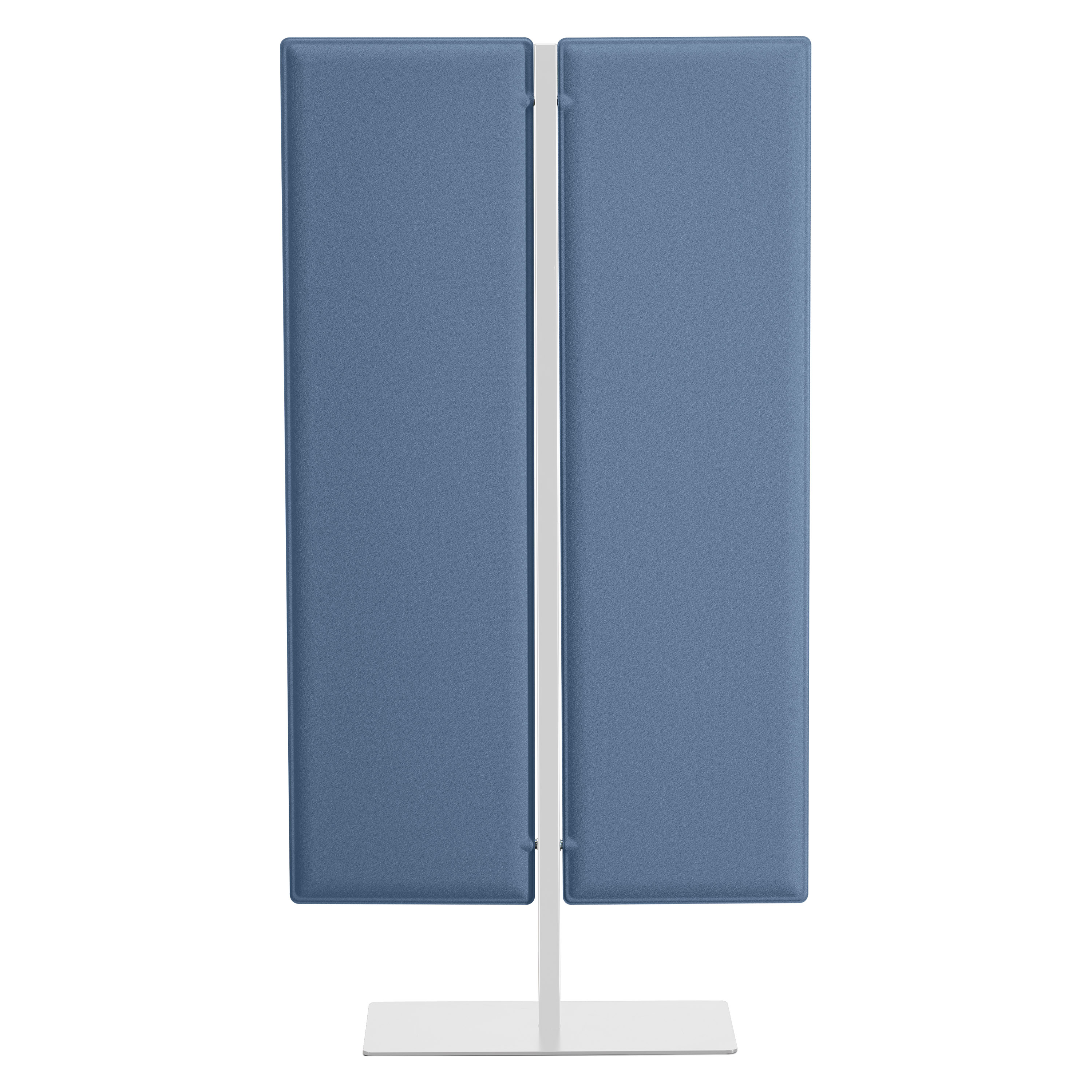 Complete your layout with free-standing partitions from the ECLA range. Acoustic partition, ideal for open-plan offices or coworking spaces to ensure the essential comfort for the well-being of employees! Fabric panel 100% polyester Trevira CS. Interior composed of thermoformed polyester fibers. With a thickness of 30 mm, it perfectly meets the requirements of an acoustic environment: sound absorption, diffusion, and reduction (ISO 354 and ISO 11654 certified). Resistance to abrasion and light (ISO 12947 and 105 B02 certified). Soundproof separation partition. White metal support and base. Support height: 180 cm. Panel dimensions: H 160 cm x W 40 cm. Base dimensions: 60 x 30 cm. Easy assembly, available as an option.