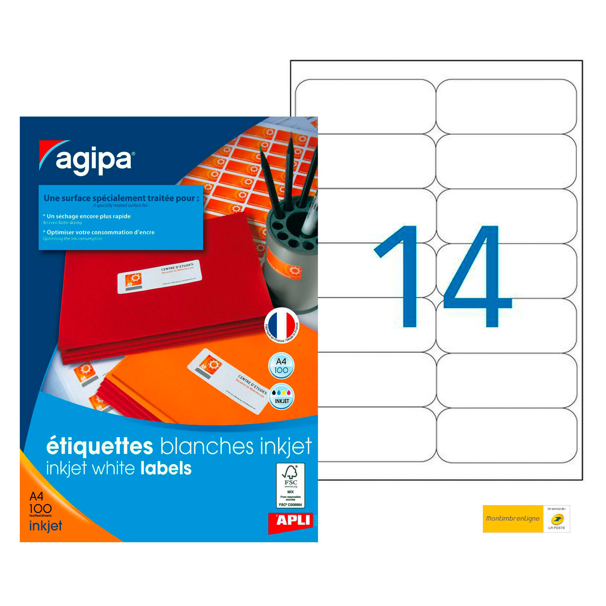 Box of 100 A4 sheets for inkjet, with 14 labels on each sheet. Rounded corners, permanent self-adhesive. Paper with FSC certificate. The best non-layered inkjet paper on the market has been selected for this product. The whiteness and the grammage determine a perfect result regarding the colors and the impression without stains. The self-adhesive labels from APLI-Agipa are compatible with the different inkjet printers.
