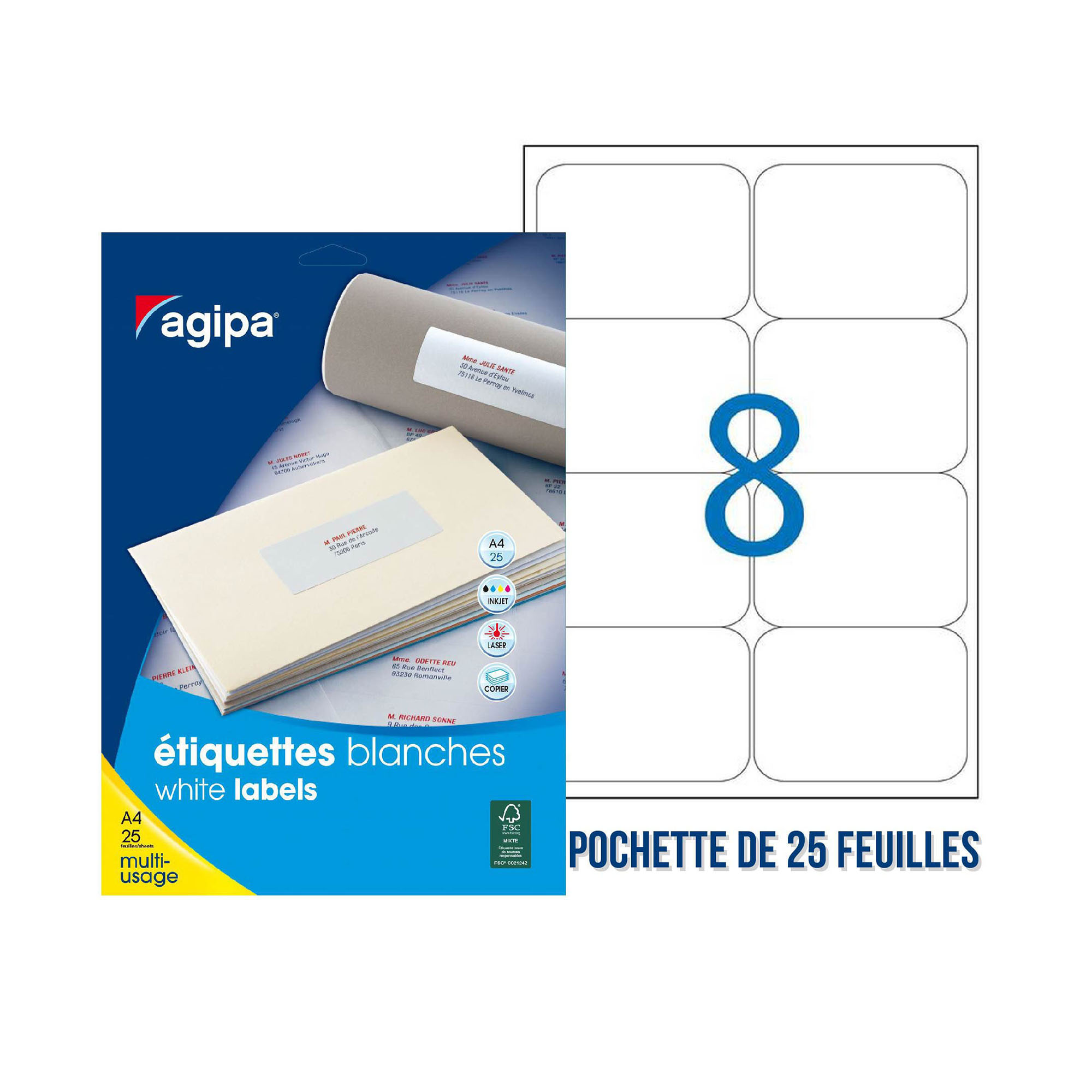 The permanent adhesive label Agipa 119610 allows you to easily print the contact information of your recipients, identify your mail and packages, index your filing system, and archive your documents.