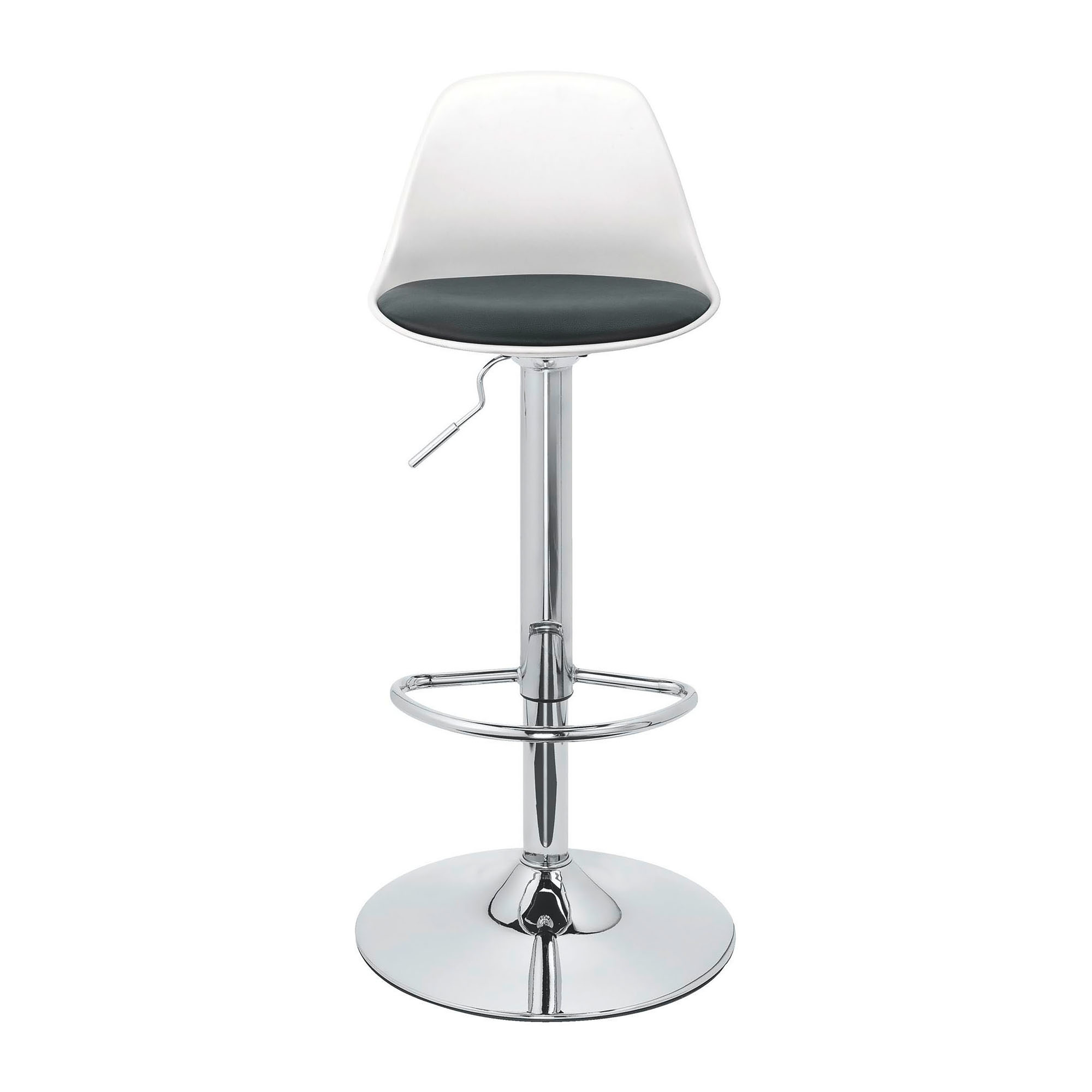 Stuffing: density 30 kg/m³. Dimensions: seat W 34 x D 32, adjustable in height from 62 to 83 cm. Pedestal Ø 38,5 cm. Back support H 25 cm.