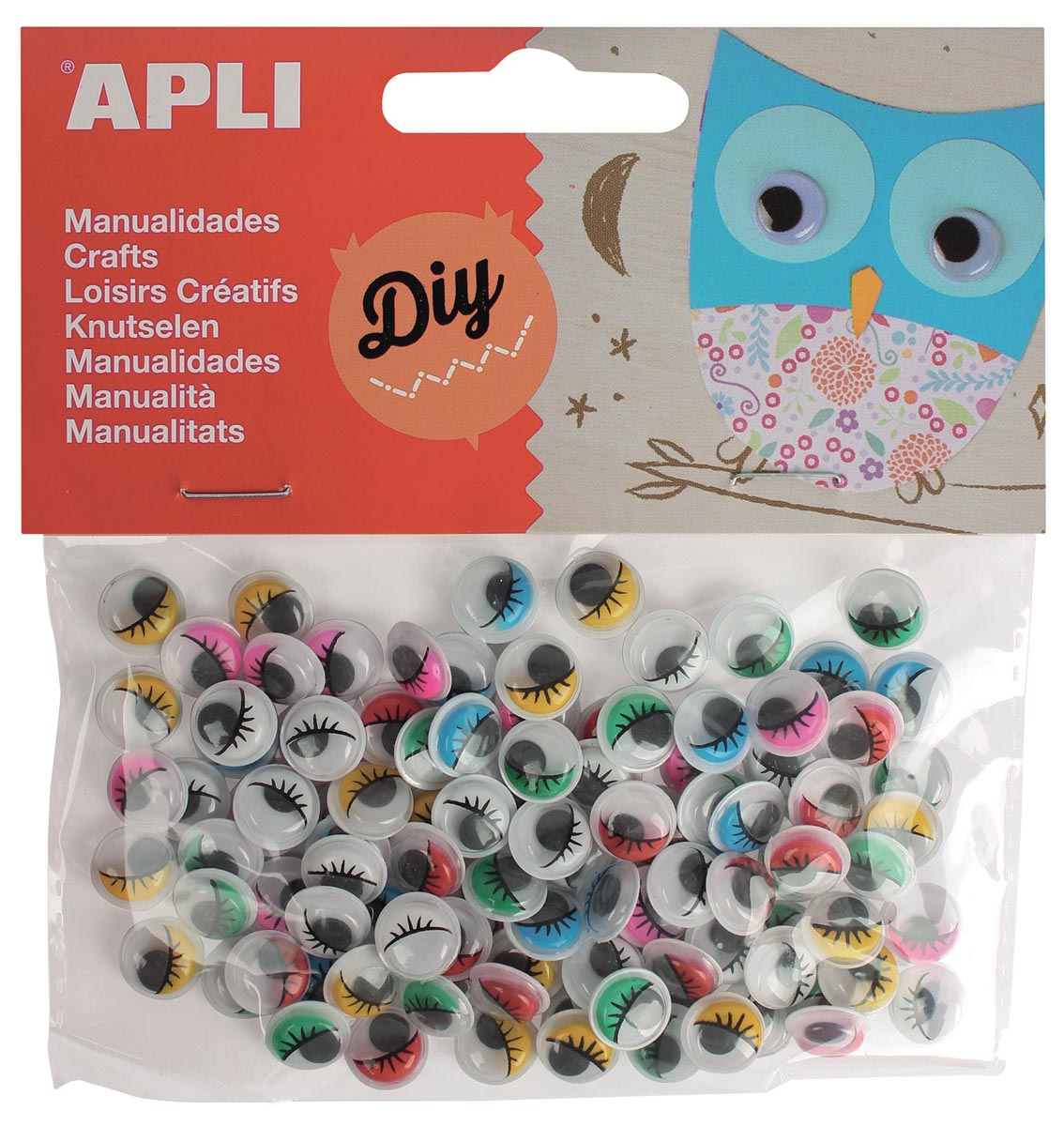 Apli yeux mobiles adhésifs de couleur avec cils, rond, blister de 100 pièces