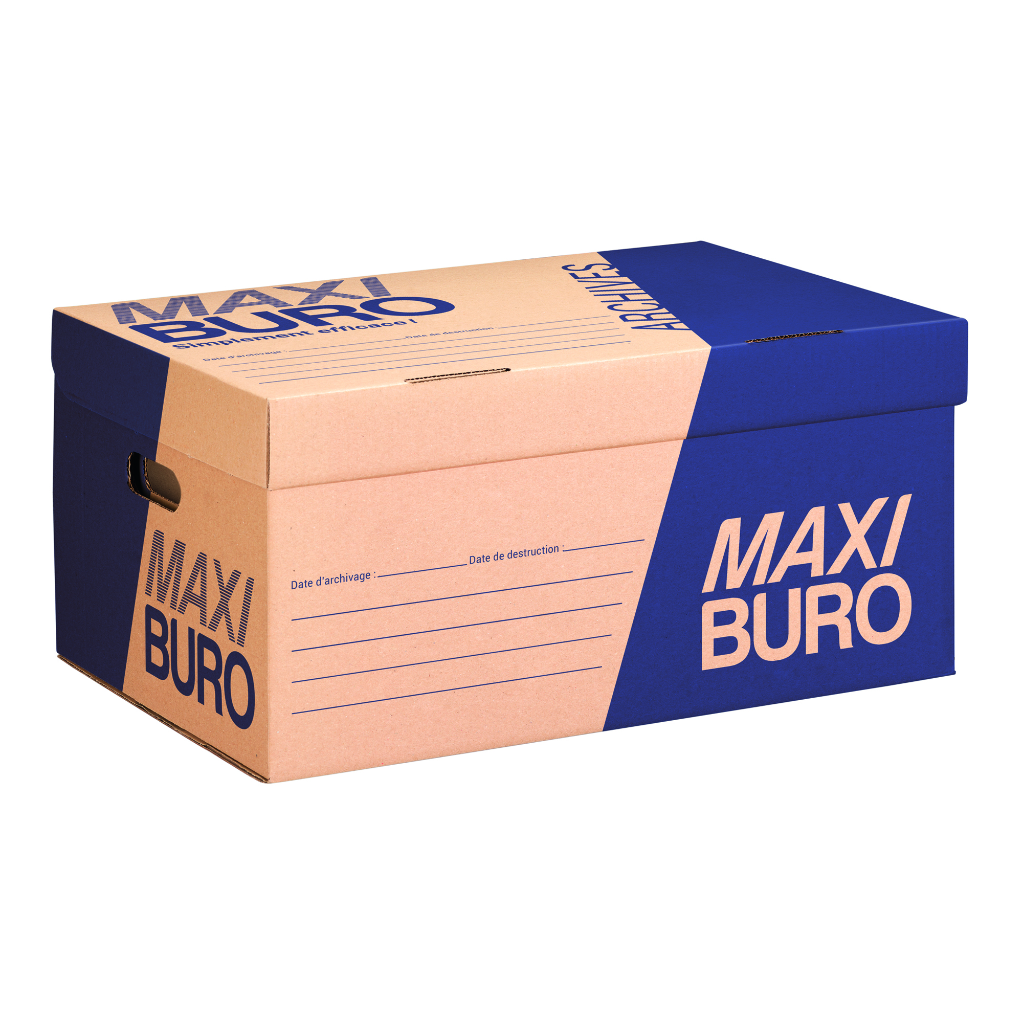 Very strong: supports up to 20 kg and resistant to crushing up to 200 kg. Ecological: recycled cardboard. Indexation on the top and and on the sides. Large dimensions: W 54 x D 35 x H 27 cm, useful dimensions: W 52 x D 34 x H 25 cm. Can contain up 6 archive boxes with a back of 8 cm or 5 archive boxes with a back of 10 cm. Delivered flat, easy to assemble with simple folding. Well designed: with handles for an excellent grip in the hand and with turn-up lid.