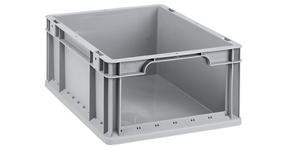 Detailled descriptionEurobox en PP, ouvert à 90 % sur la face avant, résistantcontre les acides et les graisses, bonne stabilité de forme,empilable, dimensions externes: (L)400 x (P)300 x (H)170 mm,dimensions utiles: (L)365 x (P)265 x (H)165 mm