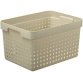 Detailled descriptionDimensions: (L)238 x (P)357 x (H)209 mm, design moderne dûaux trous en forme de diamant, multi-usage, matériau : enplastique recyclé Post-Consumer-Recycling (PP)