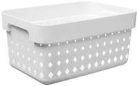 Detailled descriptionDimensions: (L)180 x (P)260 x (H)126 mm, design moderne dû aux trous en forme de diamant, multi-usage, matériau: en plastique recyclé Post-Consumer-Recycling (PP)