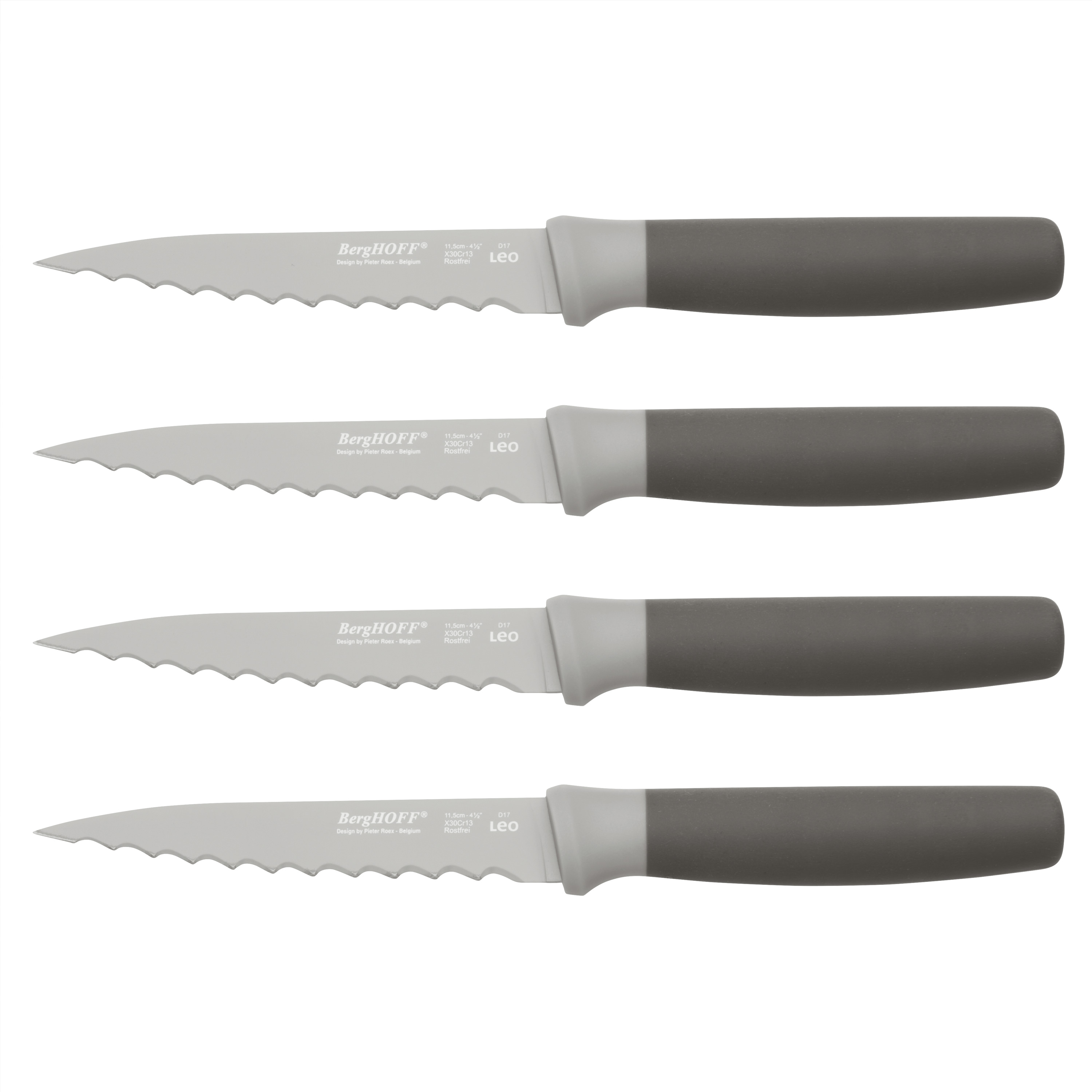Que vous serviez un steak crépitant sortant du gril, une côte de porc ou une pizza croustillante, ces couteaux à steak Leo convient bien. Vos invités aimeront la manière dont le manche doux s'adapte à leur main et comment la lame dentelée en acier inoxydable découpe en tranches la viande grâce à ses dents tranchantes et antiadhésives. Laissez-vous inspirer par les couteaux à steak Leo pour un beau dîner en famille ou pour une soirée délicieuse !