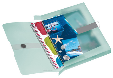 Detailled descriptionMenthe-transparent, film PP, capacité: 40 mm, avec bandeélastique et étiquette de dos