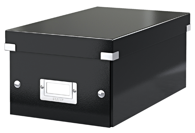 Boîte de rangement pour les DVD. Repliable pour un rangement peu encombrant lorsqu'il n'est pas utilisé. Porte-étiquette pour l'indexation. Fabriqué en carton recyclé post-consommation de première qualité. Surface plastifiée pour une meilleure protection et une protection durable. Design contemporain qui s'adapte parfaitement à la maison et au bureau. * Caractéristiques :* Boîte de rangement élégante pour les DVD ou tous autres accessoires* Facile et rapide à assembler grâce aux boutons pression et aux parois qui se rabattent (gain de place lorsque la boîte n'est pas utilisée)* Design et couleurs éclatantes WOW pour illuminer votre bureau et votre maison. * Fabriquée en carton solide et de première qualité, recyclée à 84% post consommation, avec une finition en PP brillant, pour plus de résistance et une surface facile à nettoyer.* Indexation simple grâce au porte-étiquette métal haute qualité.* Capacité : 20 boîtes standards ou 40 slim.* Les boîtes de rangement Leitz Click & Store sont faciles et rapides à monter et à plier et ne s'ouvrent jamais accidentellement grâce à leur conception brevetée.* Volume de 8 litres, capacité jusqu'à 5 kg