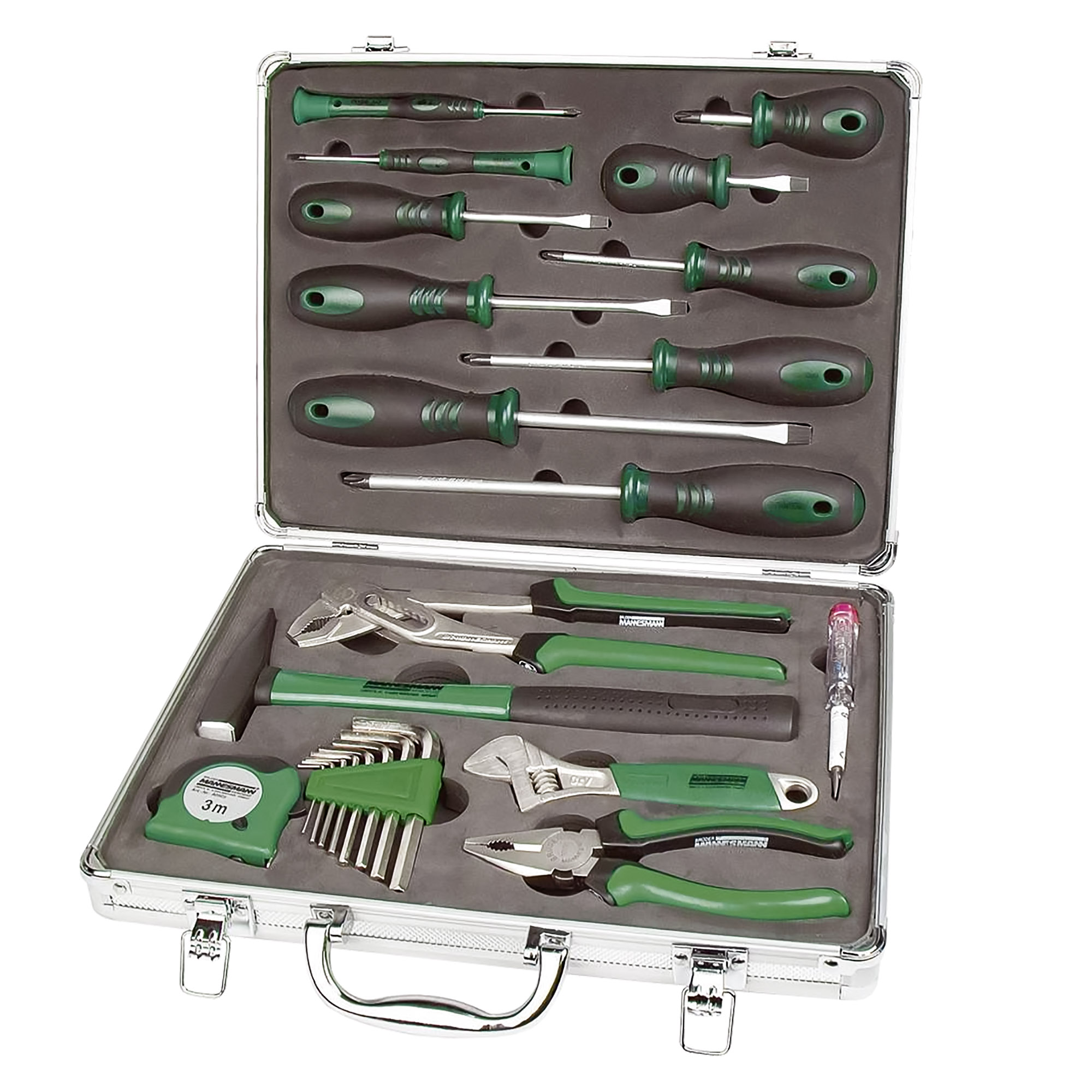 Optez pour le BRÜDER MANNESMANN Kit d'outils, 24 pièces, dans un coffret pour un équipement complet et performant pour vos travaux de bureau. Ce kit de la marque Brüder Mannesmann Green Line, reconnue pour la qualité de ses produits, vous offre un ensemble d'outils indispensables pour mener à bien vos tâches quotidiennes.