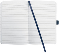 Detailled description95 x 150 mm, ligné, papier blanc 80 g/m2, couverture bleue similicuir au design Lasercut, 16 pages microperforées, élastique de fermeture, passant pour stylo, pochette, signet, reliure cousue, 174 pages (87 feuilles) couleur: midnight blue