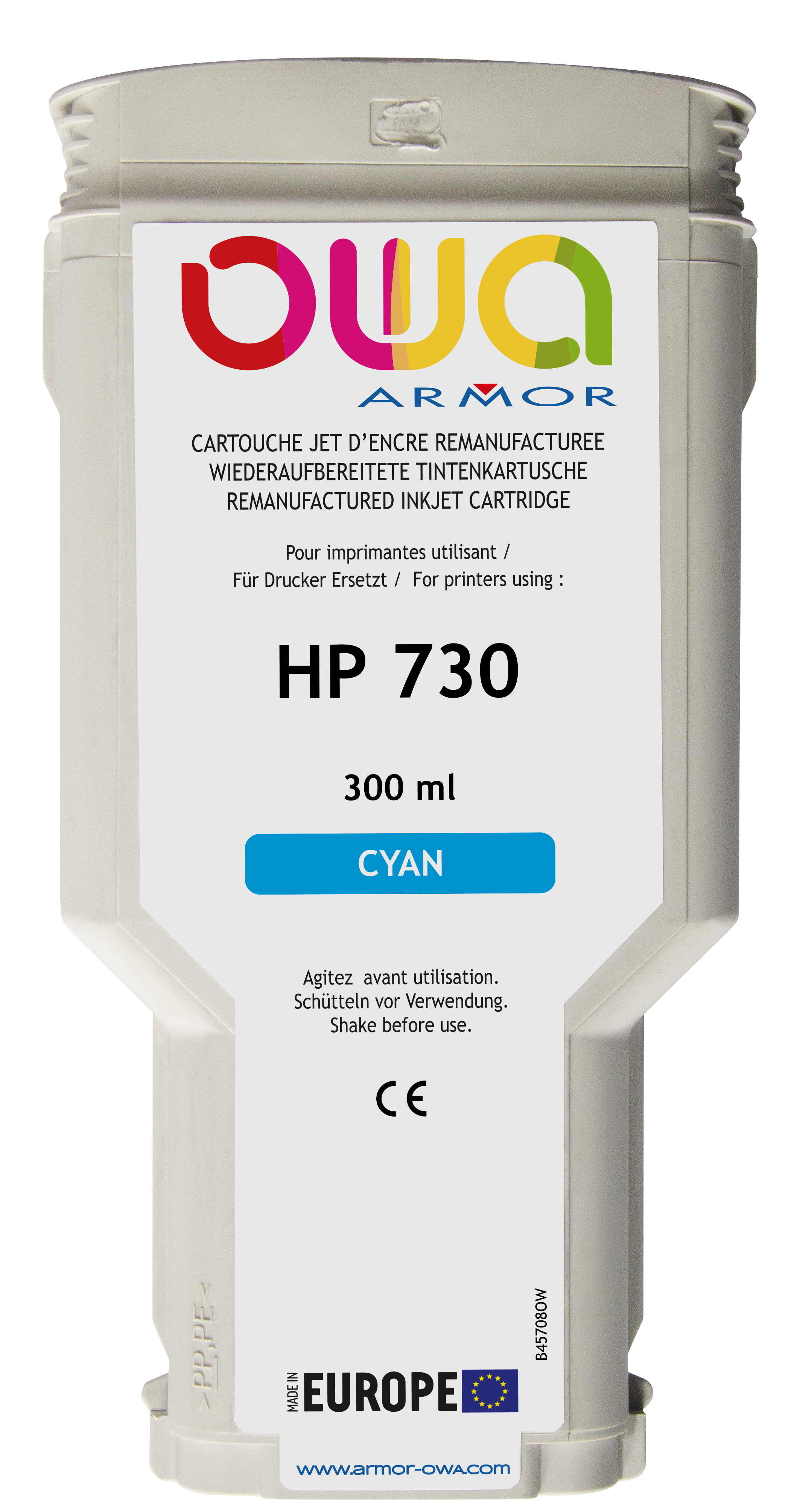 Other cartridges with the same compatibilitiesEN_Cartouche d'encre traceur remanufacturée OWA - haute capacité - Magenta - pour HP 730from€235 ex VATEN_Cartouche d'encre traceur remanufacturée OWA - haute capacité - Jaune - pour HP 730from€235 ex VATEN_Cartouche d'encre traceur remanufacturée OWA - haute capacité - Gris - pour HP 730from€235 ex VATEN_Cartouche d'encre traceur remanufacturée OWA - haute capacité - Noir Photo - pour HP 730from€235 ex VATEN_Cartouche d'encre traceur remanufacturée OWA - haute capacité - Noir Mat - pour HP 730from€235 ex VATHP 730 DesignJet separate color cartridge for inkjet printer 130 ml68 reviewsfrom€112 ex VAT