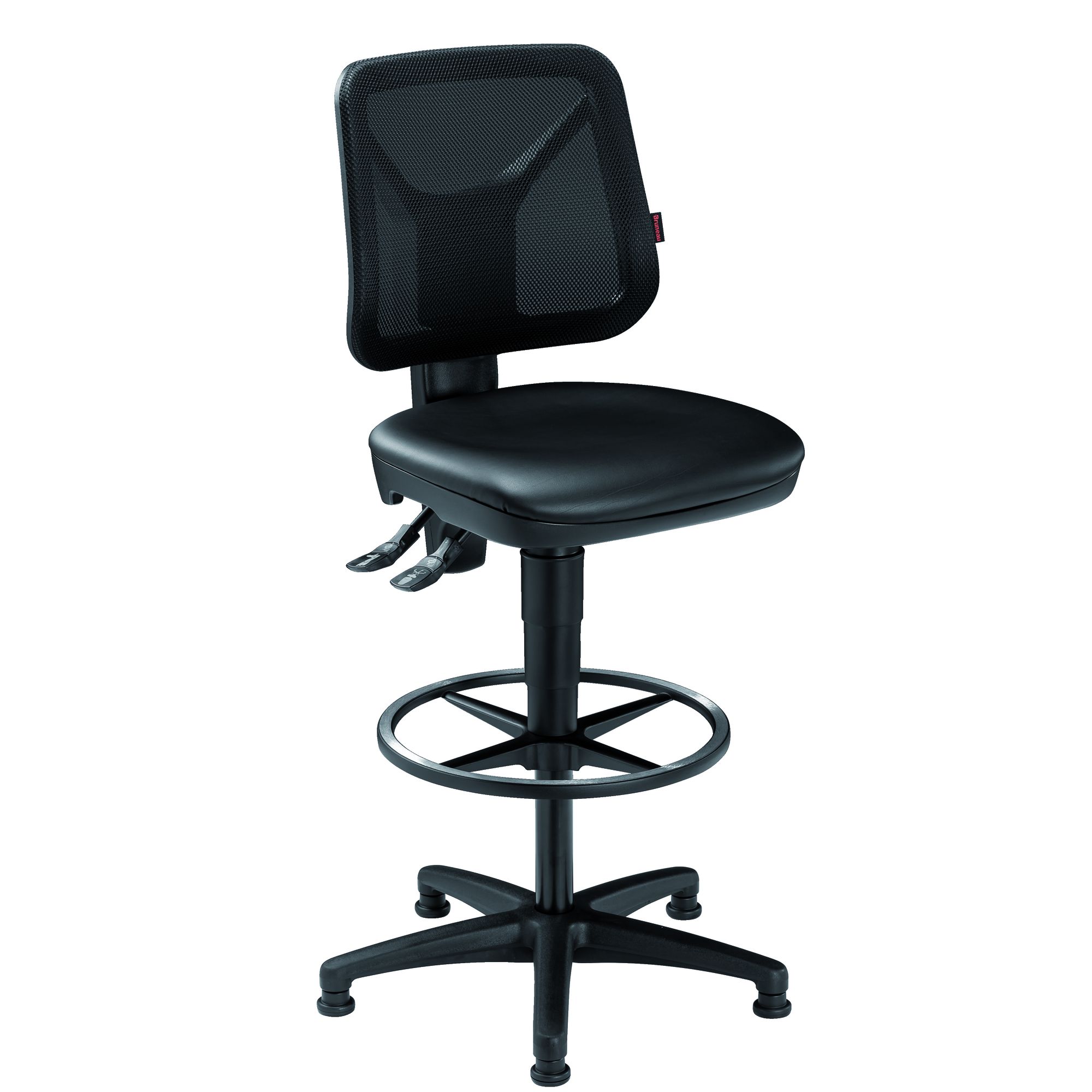 Material : comfortable seat in fabric, 100% polypropylene. Perforated back. Undercarriage in vinyl. Aluminium feet support, adaptable in height. Non-skid feet. Stuffing: density seat : 40 kg/m³.Dimensions: seat : W 50 x D 46 cm, adaptable in height from 60 up to 85 cm. Back: H 42 cm adaptable in height, with lever. Mechanism : permanent contact.