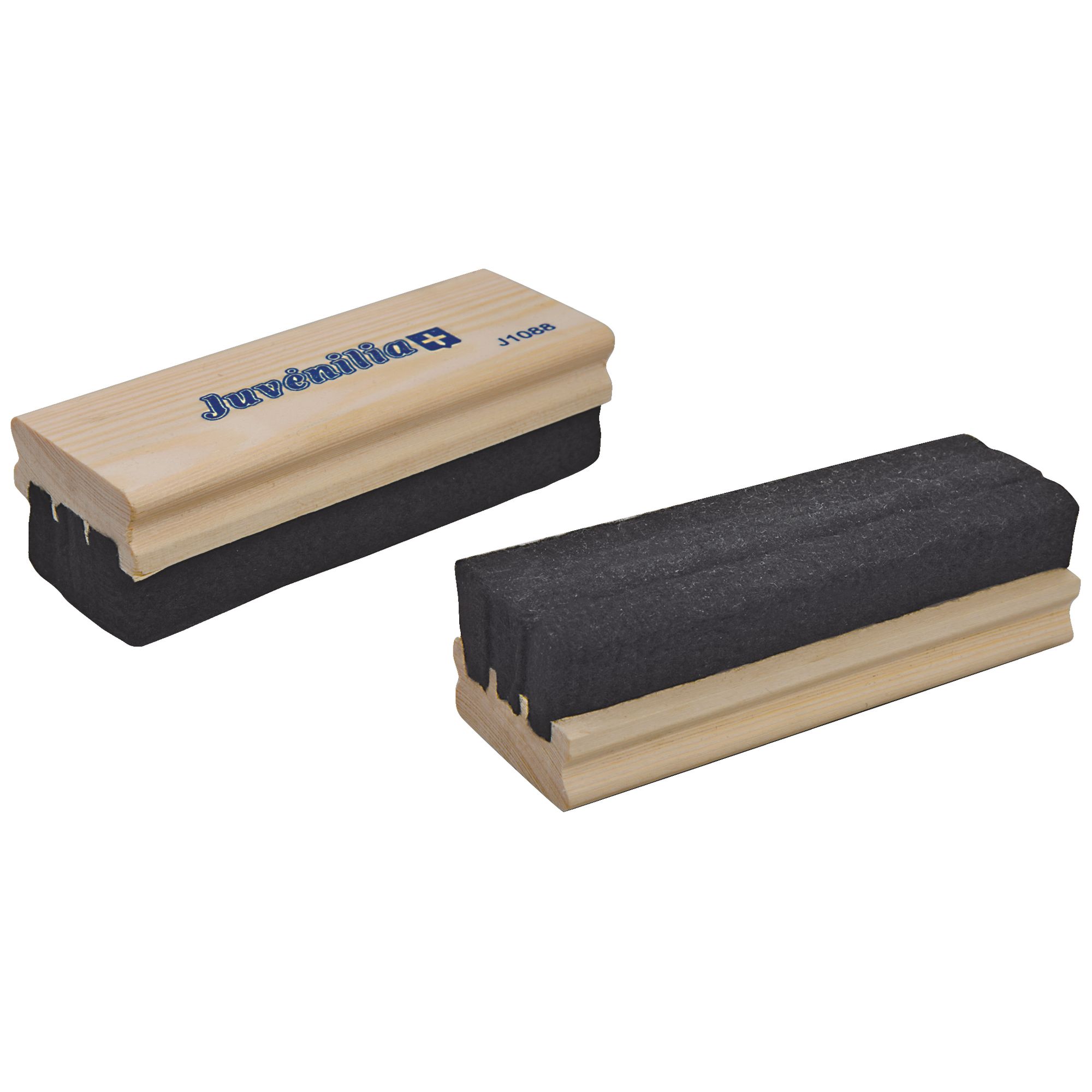 Detailled descriptionConsists of 3 absorbing plates to erase the chalk and a wooden handle. Dimensions: L14cm x l5.2cm x H 4cm.Weight: 82gr.