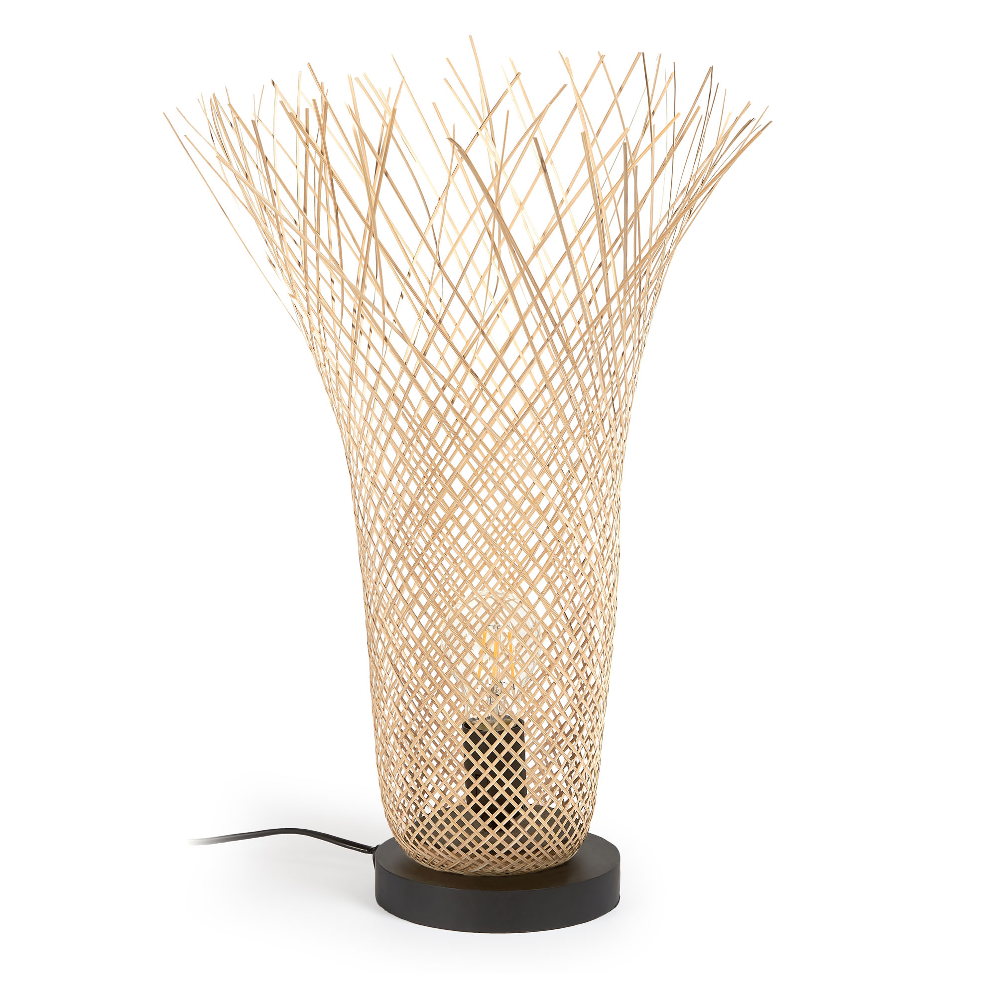 Hand-braided bamboo lamp in 100% natural material gives each one a unique grain and tone.