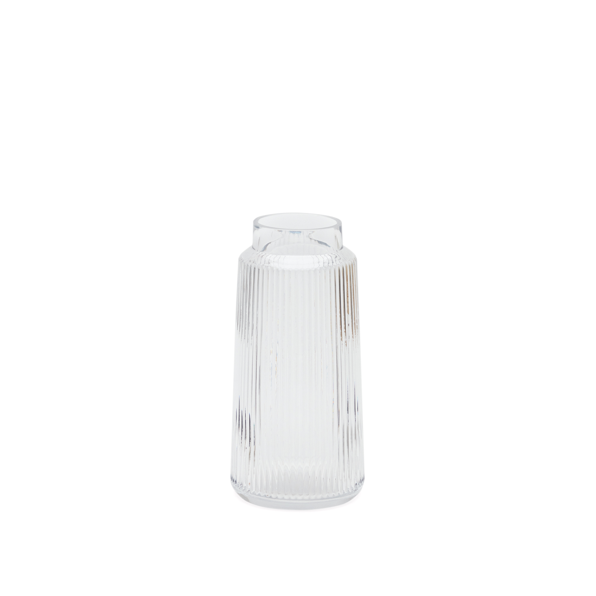 Detailled descriptionClaudia is the perfect piece to add style to any room in the house. Its transparent, textured design goes beyond of the ordinary to add personality to your spaces.Transparent textured glass vase.Rounded design with textured finish.7 cm opening.Combine it with the rest of the collection.