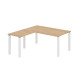Corner desk Eden light oak top L 160 cm with suspended side desk metal legs