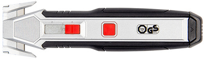 Detailled descriptionLame coupe-film rétractable, revêtement de protection sur les coins, boîtier en zinc, poussoir en ABS, profondeur de coupe: 7 mm, incl. 3 lames de rechange dans le magasin, dans blister carton, dim. (L)50 x (P)16 x (H)175 mm, poids 164 g