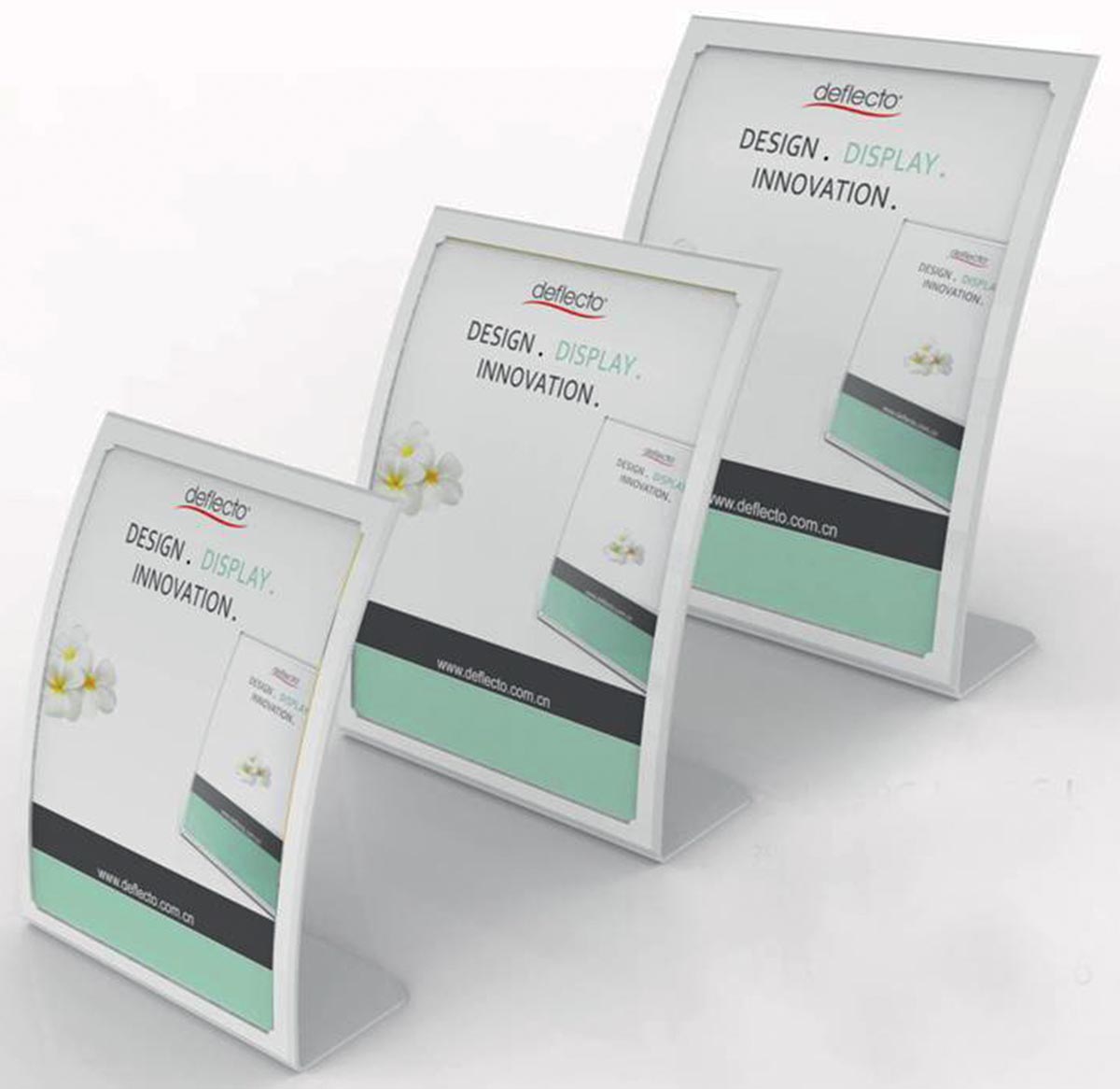 Detailled descriptionDesign élégant et nouveau. Courbé pour un impact maximal. En polystyrène transparent. Le visuel peut être facilement modifie. Idéal pour les espaces de réceptions et/ou de service.