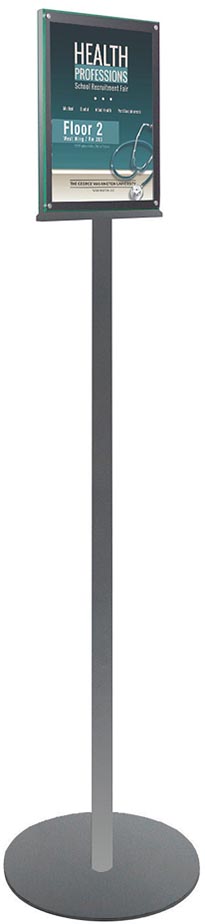 Detailled descriptionPour ft A4, double face Hauteur: 142 cm Plaques supérieures en PMMA Fixation par 4 aimants intégrés Sur pied rond (diamètre 33 cm)