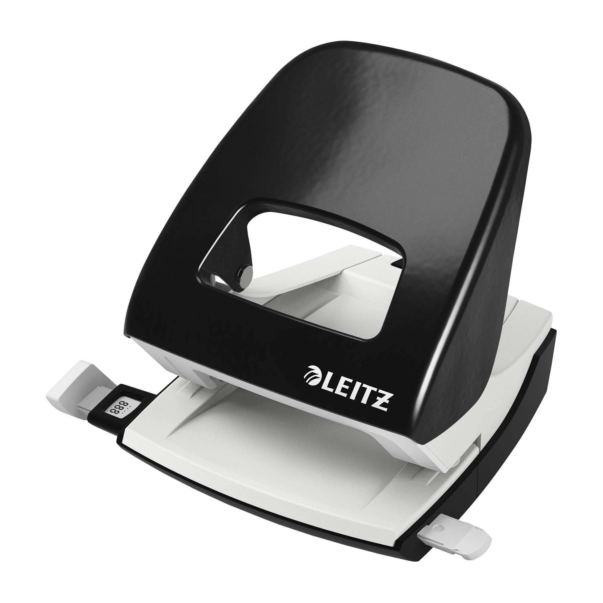 Choose the Leitz Nexxt two-hole punch for optimal punching efficiency and add a splash of color to your workspace. Punch your documents and then file them to stay organized. Made of metal, it is sturdy and reliable, and is perfectly suited for daily use. Its patented ergonomic handle and very sharp cutters allow you to punch up to 30 sheets of paper (80 g/m²) effortlessly, ideal for large files. The guiding ruler ensures precise punching and the hinged receptacle is easy to empty.