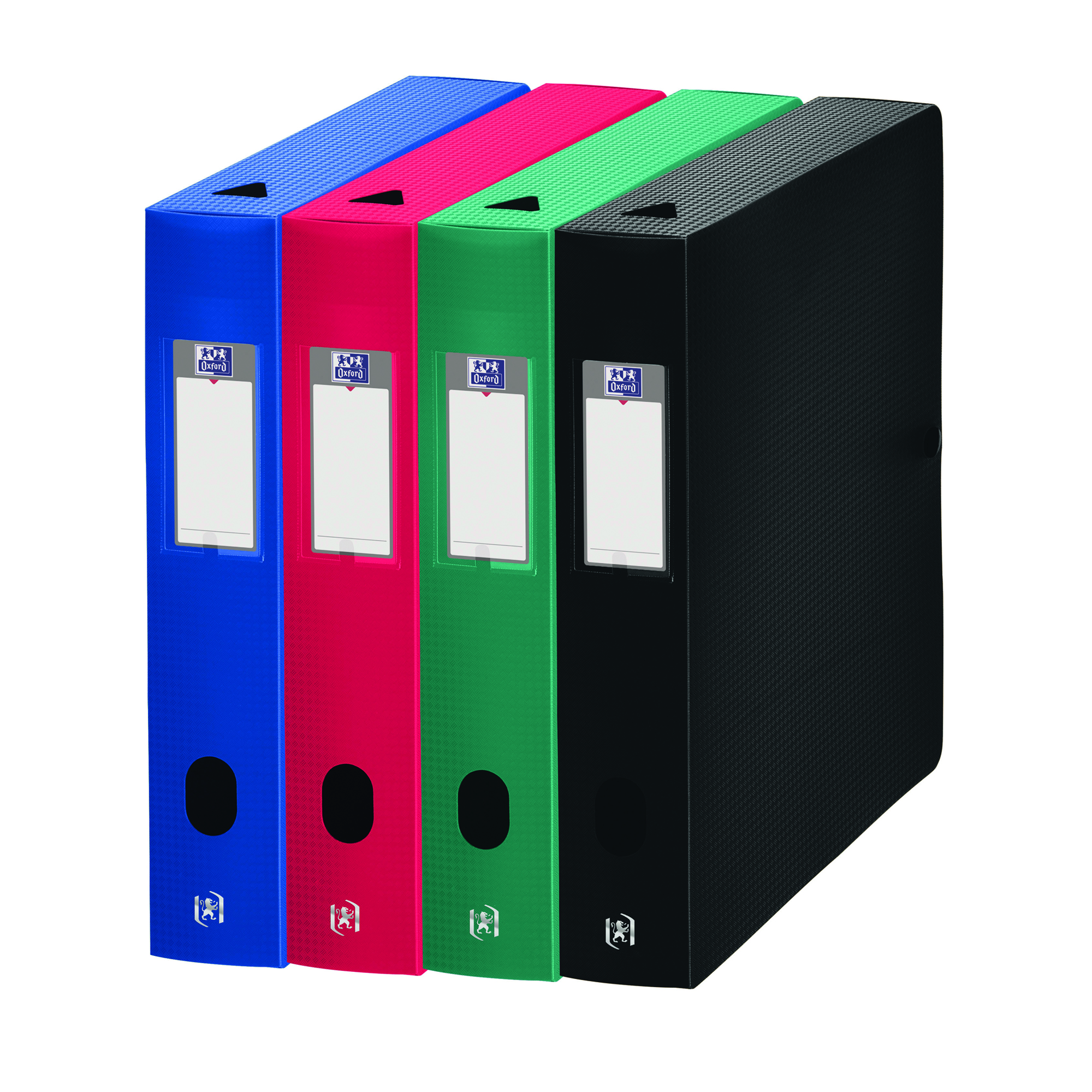 Detailled descriptionPolypropylene 7/10 opaque. Snap button closure. Label holder with removable label provided. For filing up to 24 x 32 cm format. Grip eyelet. Back 6 cm. Assorted classic colors blue, red, black, green.