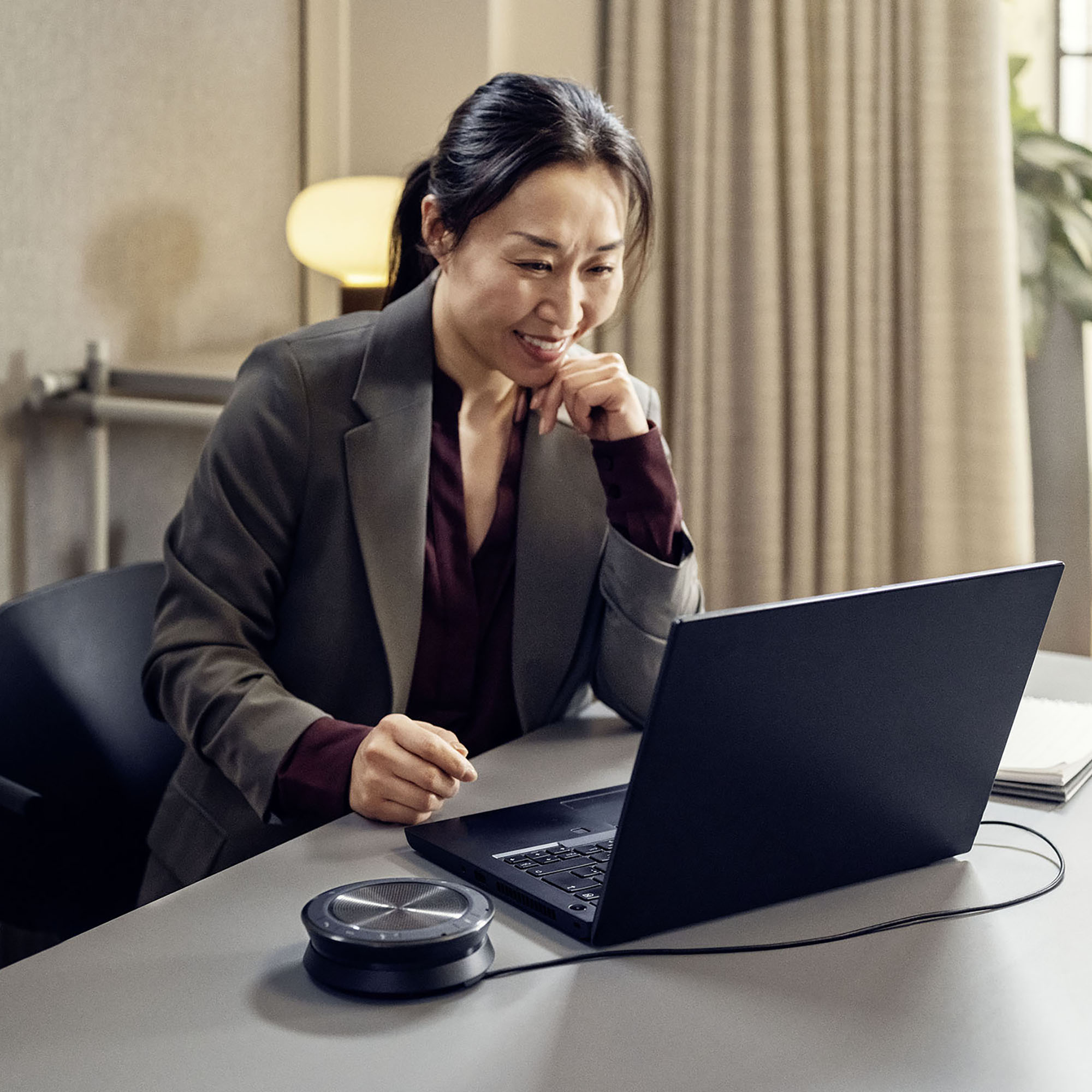 speakerphone sans fil Bluetooth®, épuré et portable aux performances audio exceptionnelles. Participez