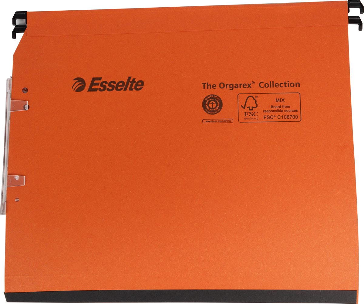 Optimize the organization of your documents with Esselte's Dual suspension files, specially designed for professional filing cabinets. With a 15mm base, these orange suspension files will add a touch of color and modernity to your workspace.