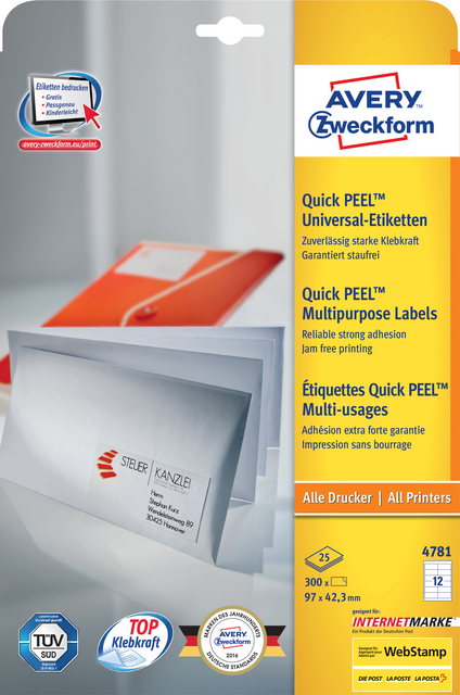 L'une des caractéristiques principales de cette étiquette universelle est son nombre généreux d'étiquettes par boîte : vous bénéficierez de 360 étiquettes réparties sur 30 feuilles A4. De plus, la technologie QuickPEEL facilite grandement la séparation des étiquettes du support, vous permettant ainsi de gagner du temps lors de vos tâches d'étiquetage.