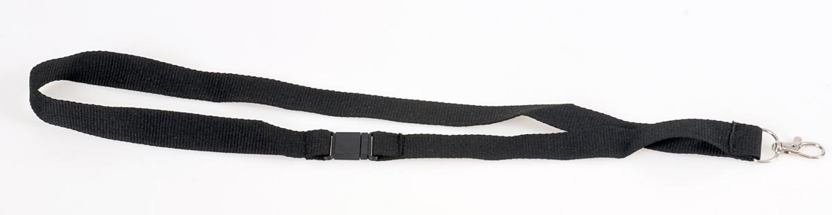 Detailled descriptionEn textile Pour badge ou porte-carte Muni d'un mousqueton et d'un fermoir en plastique Peut servir également de porte-clés Ft 44 x 2 cm (l x l) Couleur: noir
