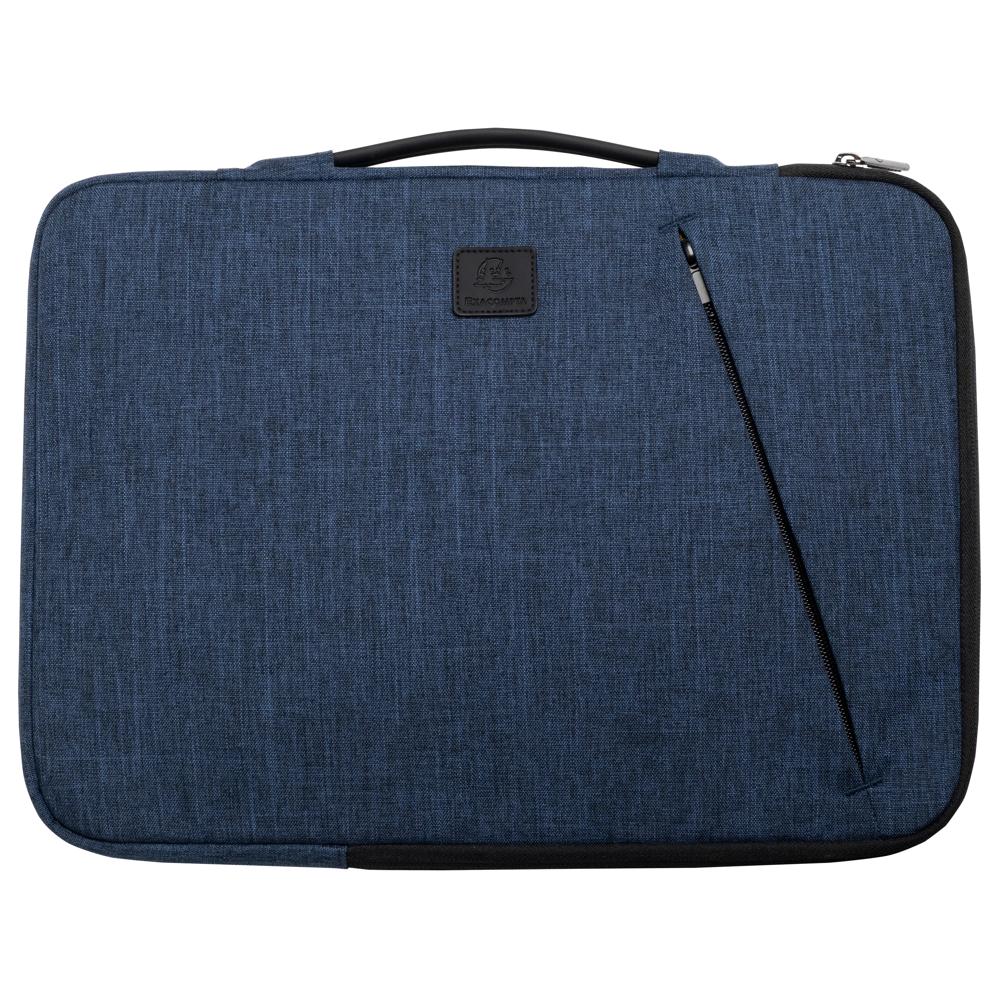 Thin and light, this cover slips easily into a bag or suitcase and protects your computer like a second skin. With an internal size of 39 x 28 x2 cm (external size: 41 x 31 x2.5 cm), it is compatible with any standard 15 to 16 inch laptop. Retractable handle for a good grip, interior foam padding (even in the corners and on the sides where the risk of impact is greater), and interior elastic to keep the laptop / tablet secure. Small pocket at the front and zipped closure on 2 sides only to avoid dropping the computer by opening the cover too quickly. Made from the recycling of 7 plastic bottles, this cover contains 58% post-consumer recycled polyester.