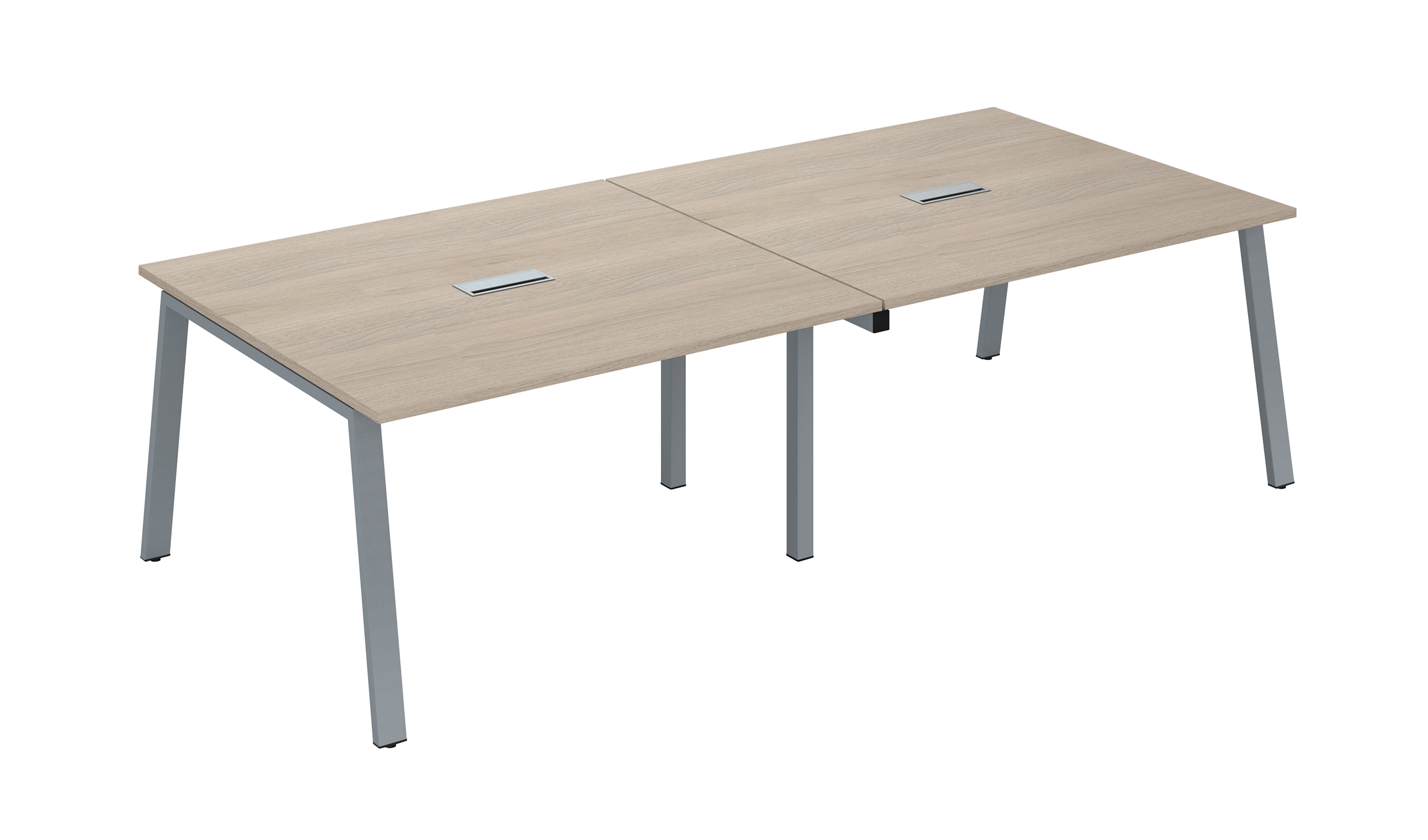 Comme pour la table de réunion de la même gamme, l'extension de ECLA est dotée d'un plateau robuste conçu en panneaux de particules avec revêtement mélaminé traité anti-reflets. Munie de chants en ABS de 2 mm d’épaisseur assortis au décor, la table de réunion dispose d’un piétement métallique type arche incliné et d'une poutre de renfort sous toute la longueur du plateau. Un top access et une goulotte positionné sous le plateau faciliteront la gestion des prises et de la connectique, pour toujours plus d'efficacité.