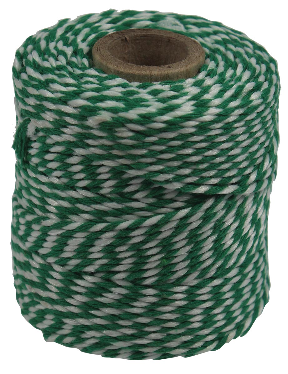 Ficelle de coton, vert-blanc, bobine de 50 g, environs 55 m