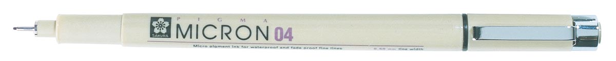 * Fineliner Sakura Pigma Micron 04 a une épaisseur de pointe de 0.4mm pour dessiner des lignes précises. * L’encre à la pigmentation noire profonde est résistante à la lumière, archivable et est apprécies au niveau mondial par les designers, les archivistes, artistes manga, dessinateurs bandes dessinées et créateurs. * Encre de qualité unique et non égalée. *Ce fineliner Pigma Micron convient particulièrement aux illustrations artistiques et dessins mais également comme un stylo d’archives. * Le fineliner Pigma Micron est parfait pour une utilisation sur presque toutes les surfaces poreuses et excellent sur le papier calque. * Couleur d’écriture: noir. * Largeur de trait : 0,4mm.