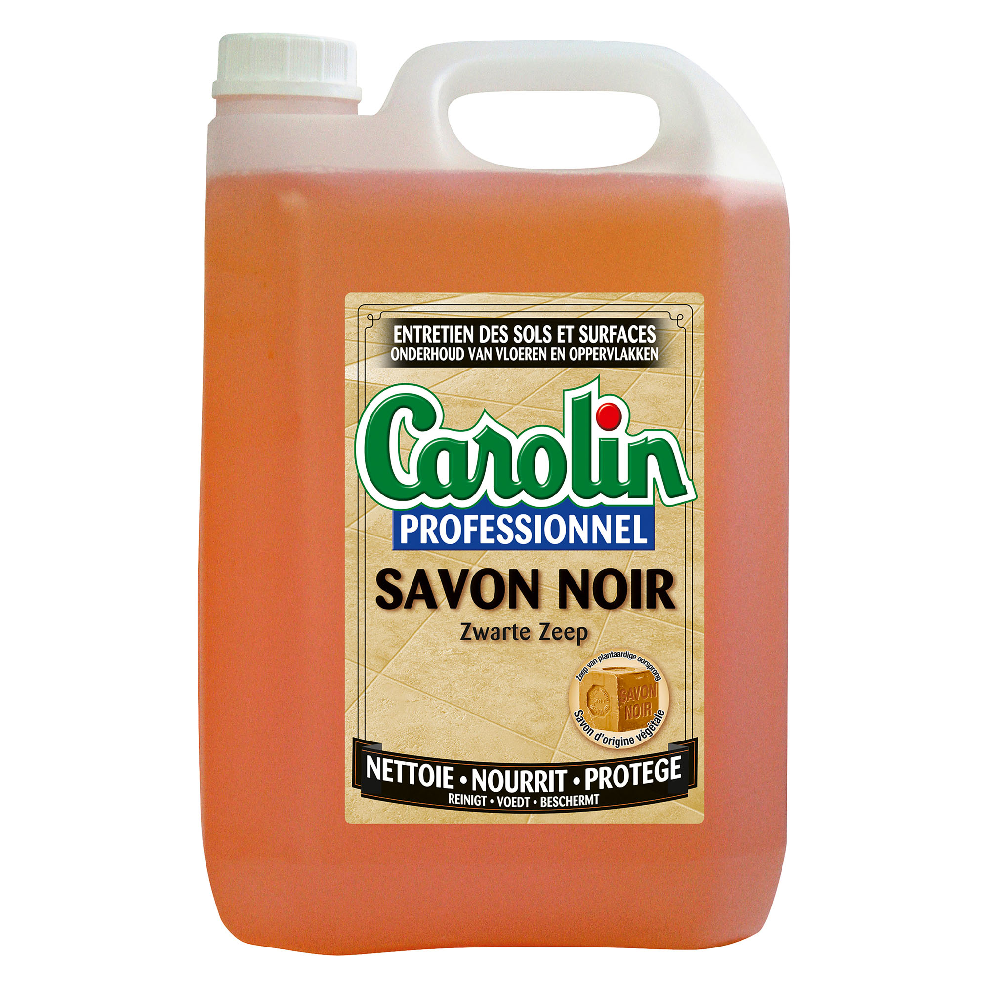 Detailled descriptionThe Carolin Professional Black Soap is specially formulated for regular maintenance of washable floors and surfaces.Formulation with 100% natural origin vegetable black soapEffectiveness of black soap: cleans, degreases, nourishes, protects and shinesThoroughly cleans your floors (tiles, sandstone, plastic coverings, protected parquet) and surfacesProtects porous floors by depositing a protective film that prevents stains from penetratingpH 11Dilute product for manual or scrubber use: follow the instructions in the downloadable technical data sheet.5 L can.