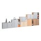 Structure: laminated chipboard (DIN 68765 - E1 category). Front side with 2 mm thick ABS protective strip. Side panels : 16 mm thick, top and lower panels: 22 mm thick. Back: 3 mm (screwed down in grooves) - silver coloured.Lock: "Slide Line" at the bottom on 2 wheels per door in rail (adjustable in height) - on top with 2 blocks per door in rail.Equipment: shelves: 16 mm thick, front side with 2 mm thick ABS protective strip. Adjustable in height every 32 mm.Dimensions: width: 120 cm, height: 74,8 cm and 110 cm (stackable combinations: 149,6 - 184,8 - 220 cm). Depth: 40 cm.Base: 5 round legs (black - H : 20 mm), on top adjustable in height through bottom.Lock: one cylinder lock for both doors (2 separate locks on demand).Handle: in silver coloured plastic, 128 mm. Carrying capacity: 25 kg/shelf.