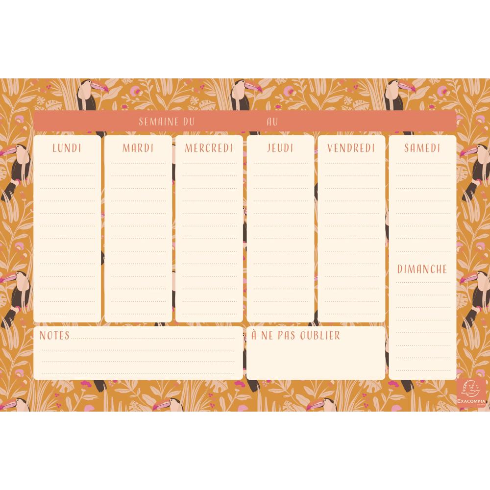 Ideal for noting down appointments, tasks to be carried out, and points not to forget. This planner allows you to have an overview of your week at a glance. To be placed on your desk and always within reach.