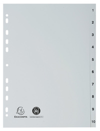 Indices recycled PP A4 10 Pt 1-10 grey - Grey