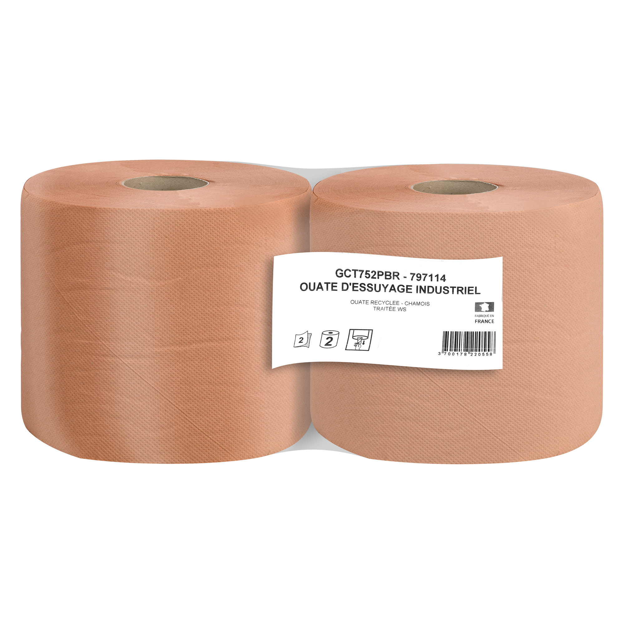 For classic degreasing of parts or as hand towels, the chamois roll 800 sheets made of recycled tissue is ideal for industrial workshops or mechanics. Very high resistance (grammage 19 g/m² per ply) and very good absorption with its embossed finish.