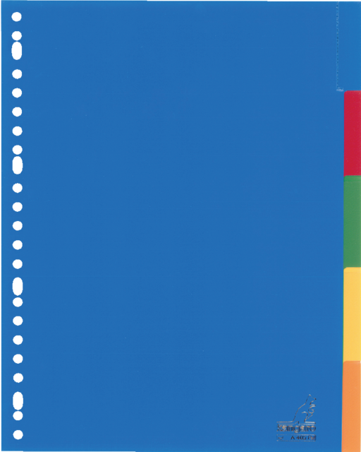 Detailled description* Intercalaires en PP coloré de 120mµ. * Les onglets sont dotés d’une fenêtre transparente soudée. * Livrés avec bandes d'étiquettes inscriptibles. * Emballé par set sous cellophane.