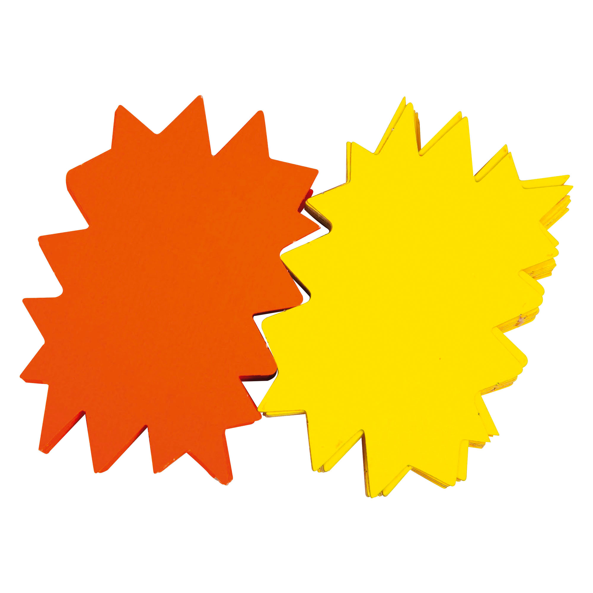 In cardboard 780 g, these non-adhesive labels have one side in fluorescent yellow and the other in fluorescent orange.